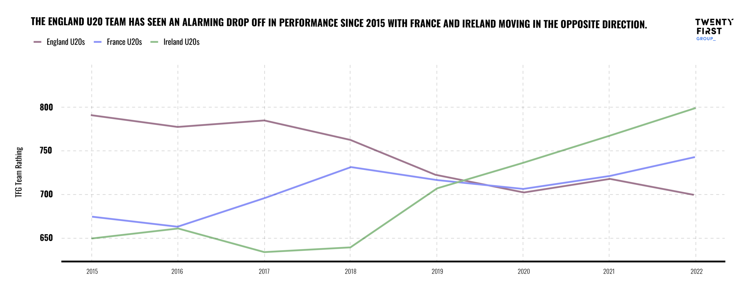 Much focus is currently being placed on the sustainability of the club game and its ability to compete with the riches of French and Irish clubs. While this is much needed, our view is that performance and commercial are inextricably linked and the RFU can’t reasonably expect to secure the financial future of the game in England without resolving the existing performance issues.