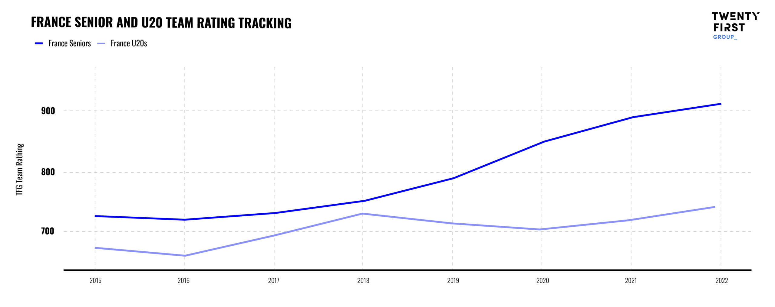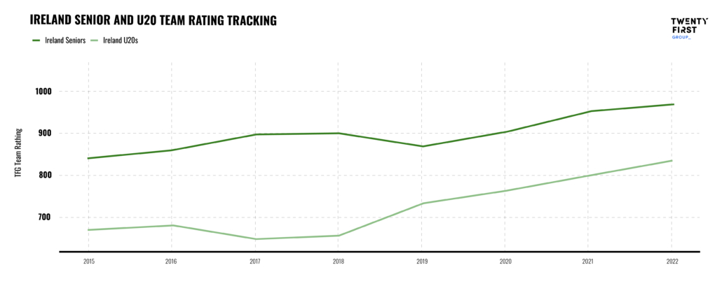 This stands in stark contrast to France and Ireland in particular. France’s youth team improved from 2015 to 2018 at which point the senior team started to challenge consistently for the Six Nations crown. It is no coincidence that this is when the likes of Dupont, Jalibert, Ntamack, Ramos & Penaud – players developed in France’s youth system – all started playing for the senior team which is now among the World’s strongest. For their part, the Irish – the Northern Hemisphere’s other great World Cup hope – have seen an improvement in both senior and U20 teams since 2019, perhaps as a consequence of a new strategy launched in 2018 with a specific focus on the period up until 2023.