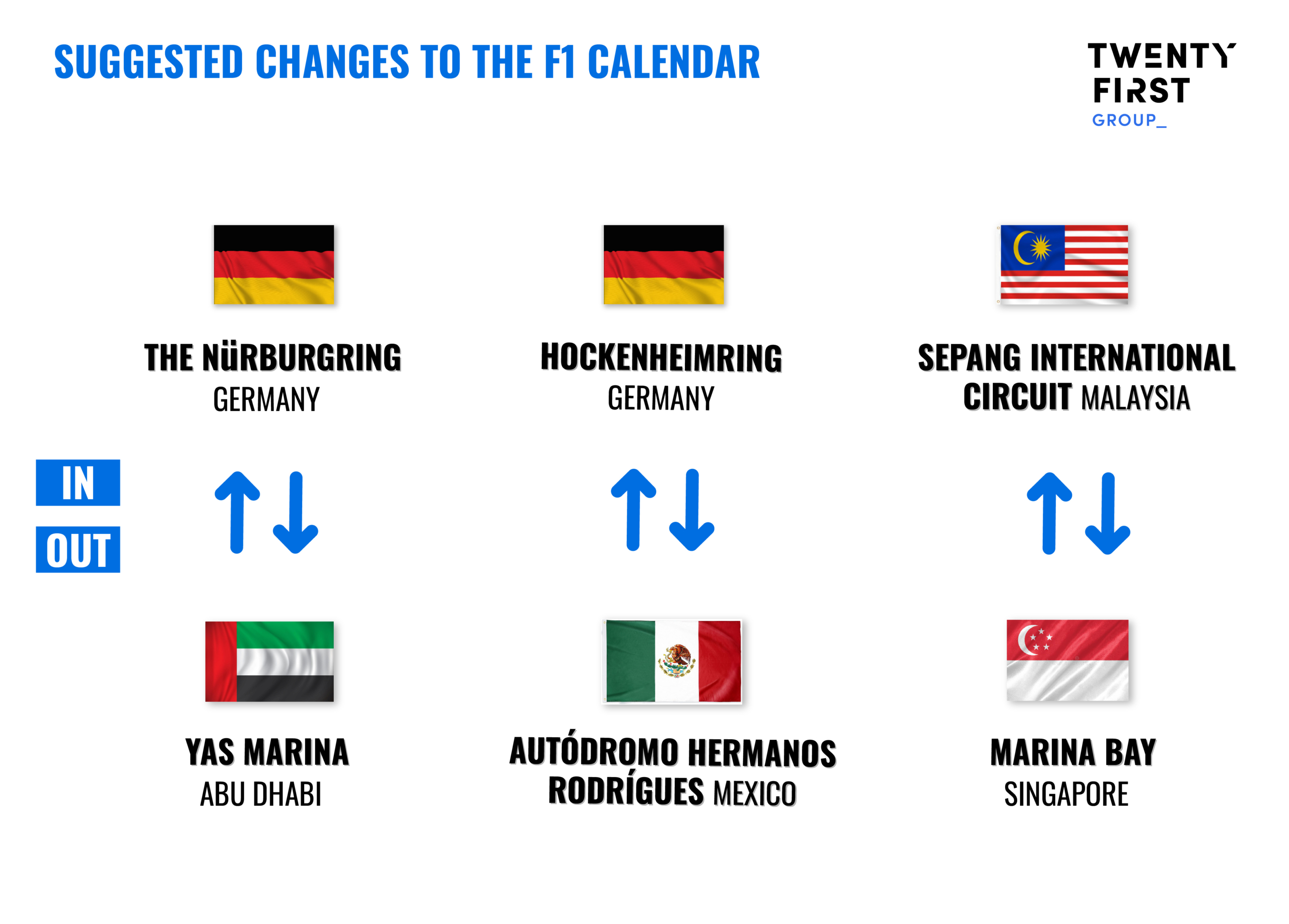 - Brand: which tracks have the biggest name recognition and following, have a long history with F1, and are associated with the largest potential audience.