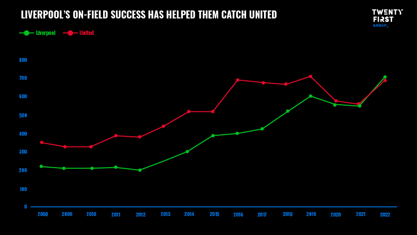Swoboda says that looking from the outside, Manchester United and Liverpool FC may seem like two similar assets. Obviously, there are differences, but both clubs are just 30 miles apart, both with significant training grounds, historic stadiums, global brands, and global fan bases to name a few.