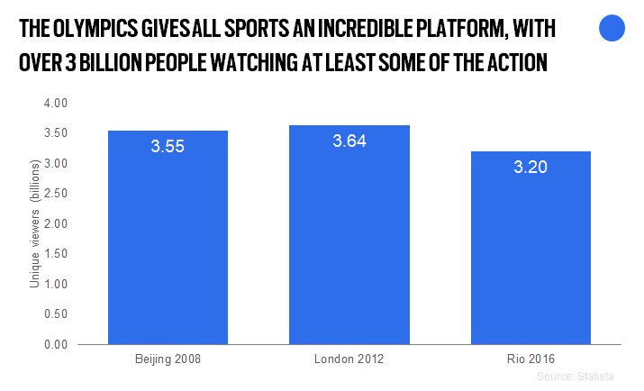 In being watched by around 40% of the entire planet, the Games present an extraordinary opportunity to the participating sports to grow their audience. Outside of the Olympics, a number of the sports that comprise the Games don’t have anywhere near the reach that the Olympics affords. The truth is, many of us will only revisit these sports when the next Games comes around, meaning their governing bodies struggle to financially capitalise on the attention that the quadrennial event brings.