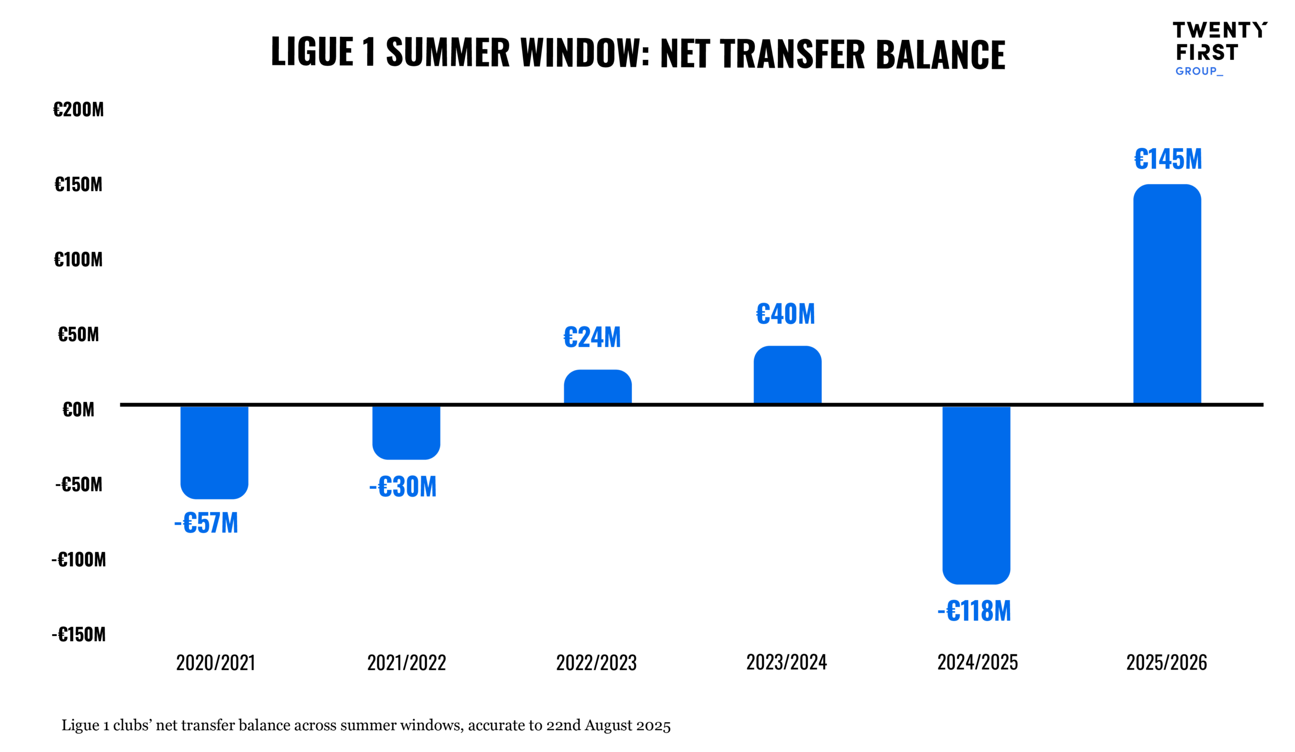 Sustaining subscriber growth will be challenging, once launch-promotions end. To capture fan attention, the league must deliver a high-quality product, which the uncertainty around media rights puts at risk. This summer, Ligue 1 clubs have the highest net transfer surplus of the past 5 years, suggesting they are using player trading to fill revenue gaps, potentially at the expense of long-term product quality.