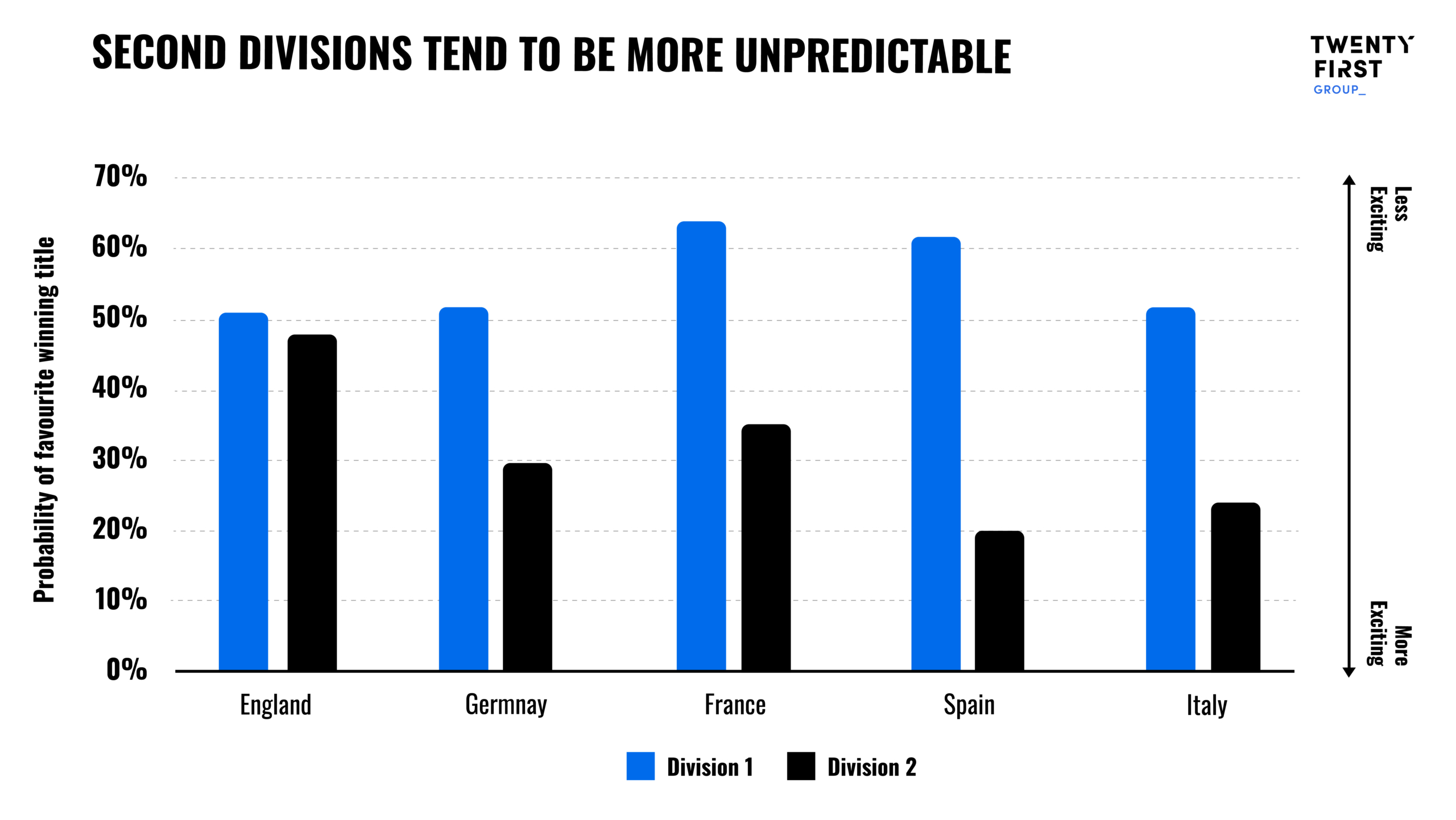 It is interesting that the five most highly rated football competitions for title-race jeopardy are second divisions.