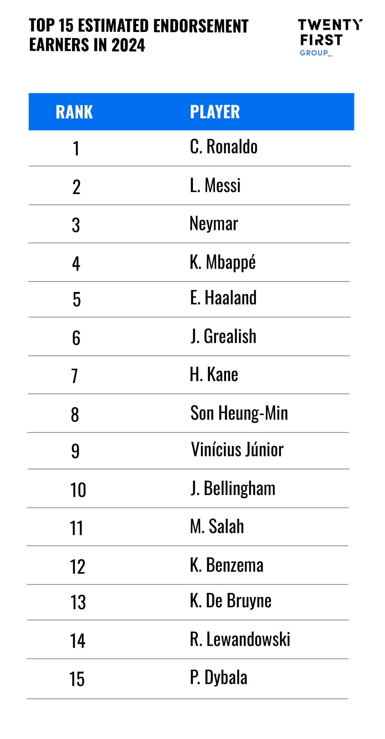 Our predictions suggest that these two will remain the highest earners from endorsement deals in 2024. Saudi Pro League (9) and MLS (3) make up 12 players from the top 100, with the Premier League (29) leading the way.